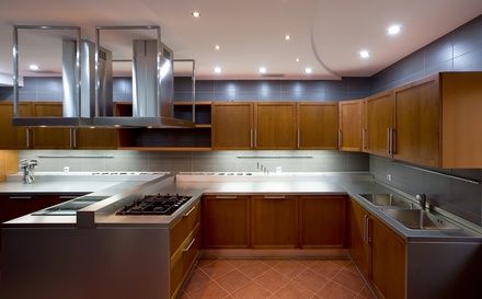 El sistema de iluminación ideal para cocinas será aquel que pueda integrar luz general con luces puntuales. Se necesita una luz general que nos permita desplazarnos y ver sin problemas en estantes y cajones. Pero también será de suma importancia la luz puntual que se dispondrá sobre las diferentes áreas de trabajo. Cada área (preparación de alimentos, cocción, comedor, etc.) tendrá su iluminación sectorizada.
