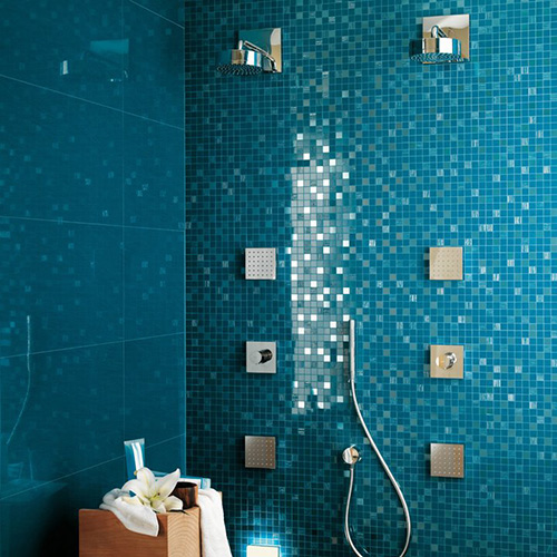 Los azulejos vienen con acabados satinados o brillantes y la gama de colores que cubren es: Amatista, aurora, champagne, verde botella, rosa, mocha, marfil satinado, tabaco satinado y pera satinado.