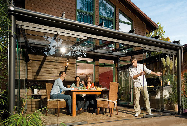 Ofreciéndote lo mejor de los dos mundos, el comfort de una habitación con iluminación natural incluso cuando el tiempo no acompaña y la libertad de estar al aire libre cuando hace sol, este asombroso diseño para patios con paredes de cristal sin marco que se deslizan puede ser la solución a todos tus problemas de espacio.
