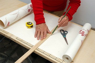 Se trabajará en una mesa de trabajo cubierta con un trapo. Medir la altura de la pared desde el techo hasta abajo. Para cortar la primera tira, desenrollar el papel, medir y marcar la altura de la pared más 4 cm para permitir algún margen en la parte de arriba y de debajo de la tira. Trazar con una regla una línea perpendicular y cortar el papel.