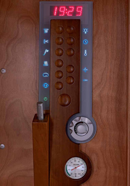Con pequeños y modernos detalles, como un control hecho totalmente de madera o las luces de neón, esta cabina de Ideal Standard combina moderna tecnología con madera muy natural.